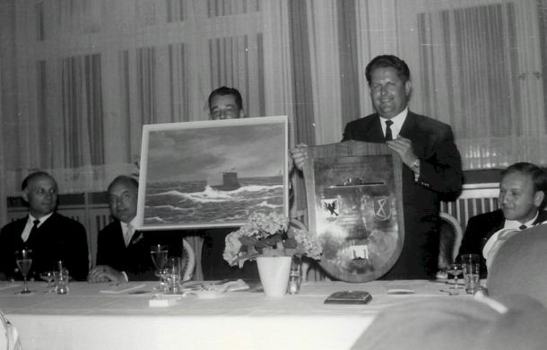 Das Einlaufen war für den Donnerstag gegen 18:00 Uhr angesetzt (befohlen) und da saßen wir dann, die einen etwas früher, die anderen etwas später. Freudig erregt, die alten Kameraden wiederzusehen, nicht gleich jeden erkennend. Aber nach kurzer Zeit der Erinnerung und des Gedankenaustauschs wer, wann, wie lange auf „U 8“ gefahren war, nahmen die Ach-ja- und die Aha-Reaktionen zu.