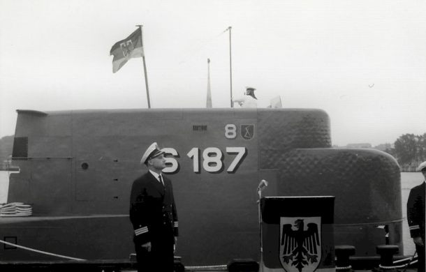 In Anwesenheit einer Abordnung der Ratsversammlung und des 1. und 2. Bürgermeisters der Patenstadt Starnberg, den Herren Dr. Widmann und Meidinger, übernahm am Mittwoch, dem 22. Juli 1964, der 27 Jahre alte Oberleutnant zur See Jörg Ullmann gemäß dem Indienststellungsbefehl Nr. 236 mit dem Befehl "Heiß Flagge und Wimpel" an der Scharnhorstbrücke im Kieler Tirpitzhafen das Kommando über „U 8". Das Boot erhielt die Nato Nummer (optisches Rufzeichen) "S 187" wurde dem 1. Ubootgeschwader in Kiel unterstellt.