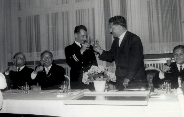 Mit dem Bus der Fahrbereitschaft war nach dem Essen ein Ausflug nach Travemünde organisiert. Dort wurde das im Hafen liegende alte Frachtsegelschiff „Passat" besichtigt, um anschließend bei einer Tasse Kaffee im Restaurant Herrmannshöhe am Brodtener Steilufer den weiten Panoramablick über die Lübecker Bucht zu genießen. Um ca. 17.00 Uhr auf dem Wieksberg angekommen, war noch Chance auf ein Schläfchen oder ein kleines erfrischendes Duschbad! Gegen 19.00 Uhr fanden sich dann alle wieder zu einem feierlichen Abendessen in der O-Messe ein. Man(n) führte sich in gemütlicher und angenehmer Atmosphäre auch noch das eine oder andere Gläschen Wein oder Bier zu Gemüte.