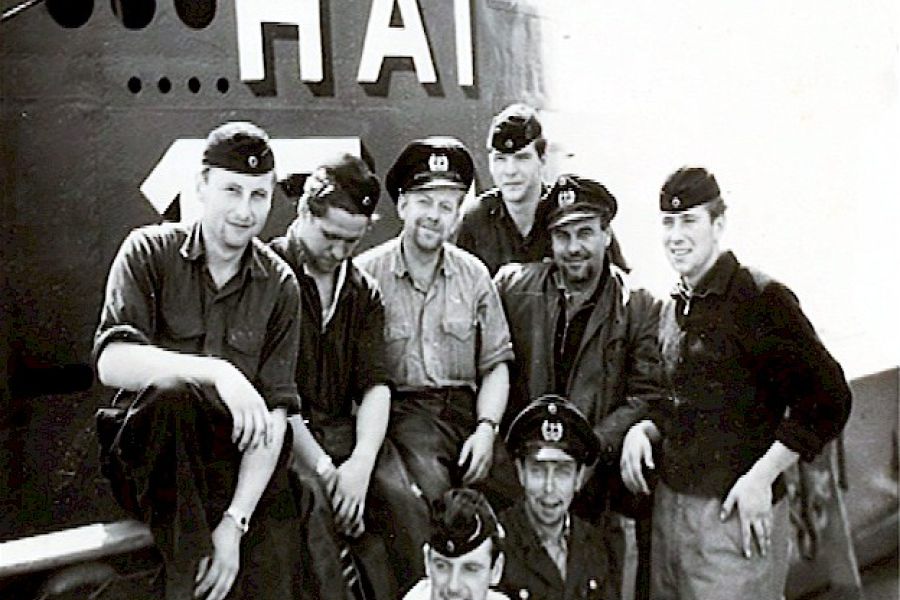 Mit Gründung der Bundeswehr begann eine neue Periode des Ubootfahrens in Deutschland. U-HAI wurde als erstes Boot der jungen Marine am 15.08.1957 in Dienst gestellt. Es war ein Boot der ehemaligen Kriegsmarine, das im Kattegatt, nahe Anholt, durch die Hamburger Bergefirma Beckedorf aus 56 m Wassertiefe gehoben worden war und in weniger als einem Jahr durch die Howaldtswerke in Kiel wieder einsatzfähig gemacht werden konnte. U-HAI diente vornehmlich der Ausbildung von jungen Ubootfahrern und wurde mehrfach umgebaut. So erhielt es 1961 eine strömungsgünstigere Brückenverkleidung und 1964 eine neue Dieselanlage unter gleichzeitiger Verlängerung des Rumpfes um 1,45 m.